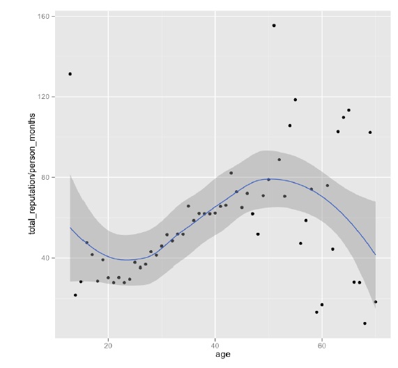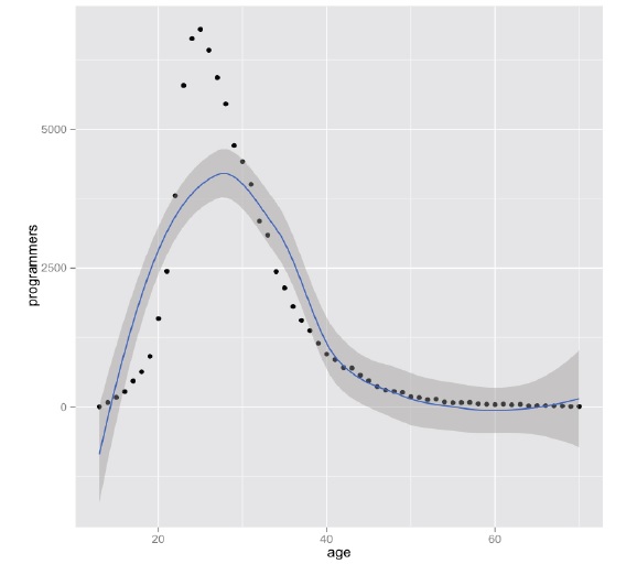 首 先,我们先来看一篇论文《Is Programming Knowledge Related to Age?》(PDF链接),这篇论文是两个北卡罗莱纳州立大学计算机科学系的两个人Patrick Morrison 和 Emerson Murphy-Hill 对StackOverflow.com上的用户做了相关的数据挖掘得出来的一些数据。(我们知道StackOverflow.com上的数据是公开的,任 何人都可以用来分析和统计,所以这篇论文的真实性是有的)